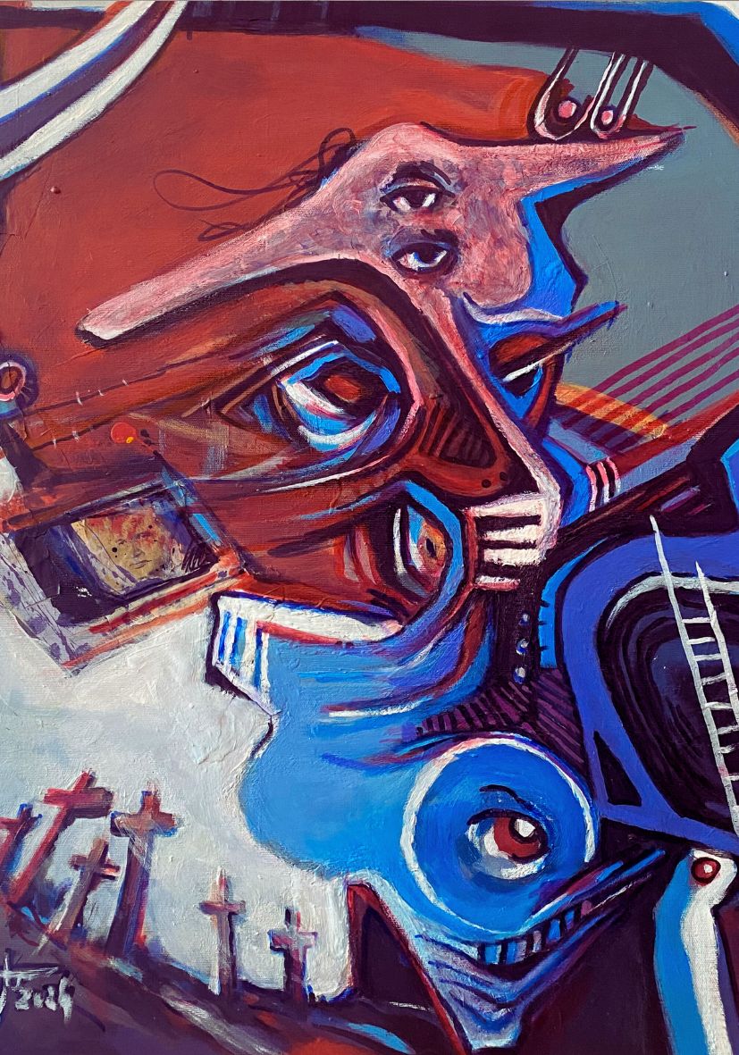 Eroarea ca limbaj și forță regenerativă Expoziția „Divină Eroare în cheie antifragilă” este rezultatul a trei ani de cercetare vizuală, desfășurată în trei etape și trei niveluri perceptive: vizual, cognitiv și afectiv. Siluetele deformate, tușele tremurate, colajele și simbolurile fragmentate construiesc o dramaturgie vizuală care sfidează perfecțiunea și normele sociale, invitând privitorul să devină martor al imperfecțiunii și participant activ la catharsis.