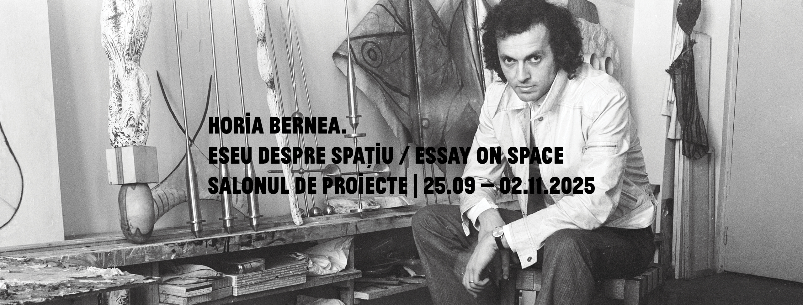 Expoziția Eseu despre spațiu este o primă manifestare publică inițiată în colaborare cu nou înființata Fundație Horia Bernea, a cărei misiune este de a cerceta și pune în valoare moștenirea artistului. Expoziția aduce în atenția publicului o serie de lucrări, schițe, documente care aparțin etapei timpurii de lucru, fundamentală pentru configurarea unor direcții conceptuale și soluții formale ce vor marca ulterior întreaga sa operă. Experimentele realizate de Horia Bernea în intervalul 1968-1973 sunt de o uluitoare modernitate în ceea ce privește investigarea mediului picturii: de la experimente cu materia picturală – care fac ca în anumite situații el să utilizeze diverse tipuri de pigmenți industriali – până la explorările sale insistente care împing pictura către registrul obiectual. Această perioadă se definește, de asemenea, prin articularea reflecțiilor sale asupra actului artistic în texte cu valoare programatică, prin care arta este integrată într-un câmp amplu de preocupări, având ca miză simultană extinderea cunoașterii și adâncirea misterului. Construcția unui sistem de „entități”, cu morfologii și nume inventate – Brarb, Mucarfă, Verg, Stroaeuge –, este emblematică pentru modul în care artistul îmbină referințe la universul subatomic, la realitatea tangibilă și la planul spiritual. În același timp, tranziția de la schiță și desen la pictură ori obiect se conturează pregnant în cadrul acestei expoziții, care caută să capteze un proces febril de lucru, unde rigoarea se împletește cu spontaneitatea, evocând frenezia improvizatoare a jazz-ului, o pasiune de lungă durată a lui Horia Bernea. Unul dintre cele mai timpurii ateliere, cel din strada Șelari, este prezent în expoziție atât în sens documentar și reconstitutiv, cât și în sensul revelării practicii conceptuale care a marcat creația artistului.