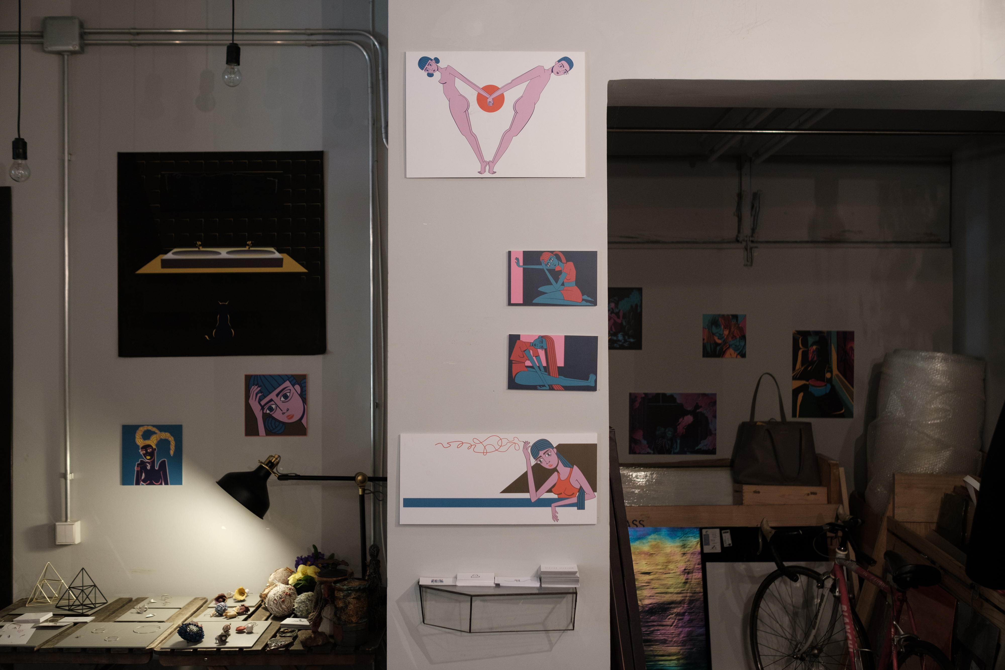 Şi nu sunt singure, pentru că mereu aşteaptă vizitatori. Spaţiul este mic, simplist, dar mereu deschis publicului, care este chiar invitat să depăşească barierele impuse de un show-room obişnuit şi să experimenteze actul creativ împreună cu prieteni sau artişti învitaţi.